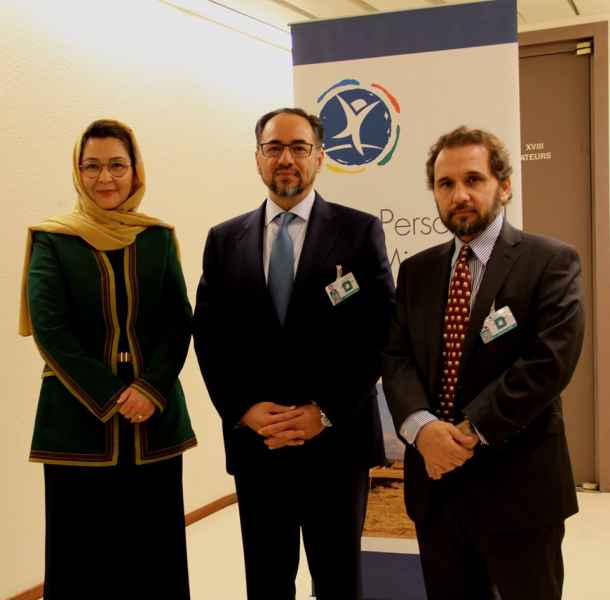 HRH Prince Mired Bin Ra'ad Bin Zeid, HE Minister Salahuddin Rabbani and Ambassador Dalil, 17th Meeting of States Party, Anti-Personnel Mine Ban Convention, UNOG, Nov. 2018