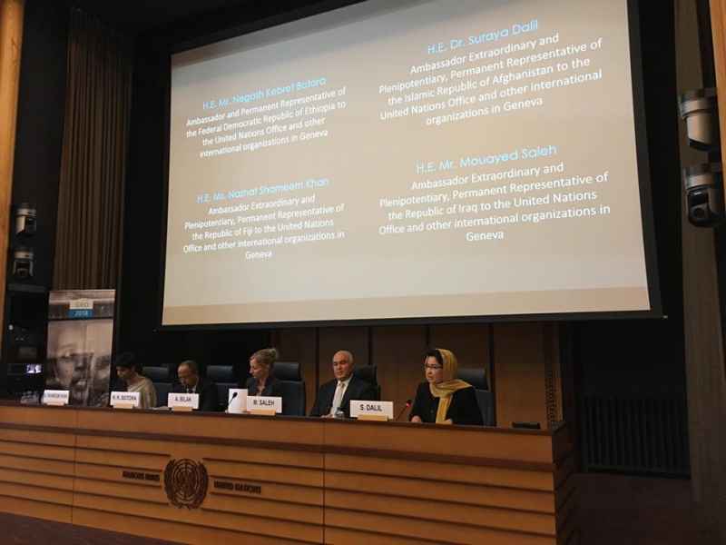 Ambassador Dalil moderating the panel on “food security and livelihoods in times of drought”, Geneva Conference on Afghanistan, UNOG, Nov. 27, 2018
