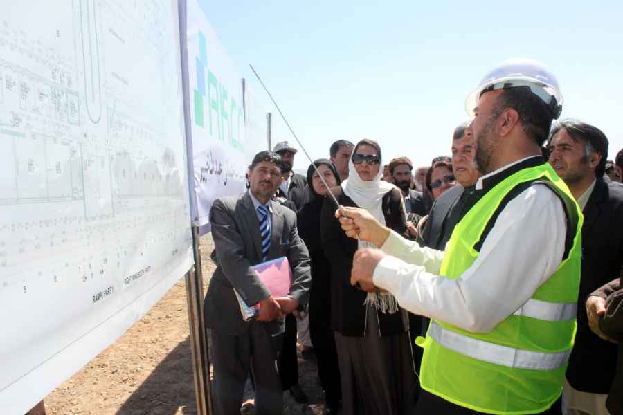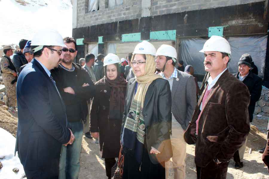 The-AKDN-team-briefing-the-Minister-on-the-work-progress-and-the-services-expected-from-the-new-hospital,-Bamyan,-Feb