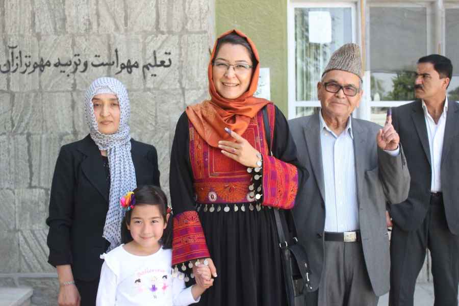 Minister Dalil, her father and her daughter attended voting for the Presidential election June 2014, Kabul